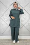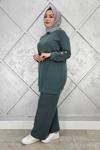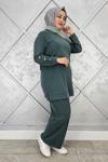 Ka Hijab Çift Cep Düğme Detay İkili Triko Takım - Zümrüt