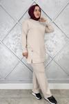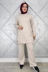 Minimal şıklığın modern detaylarla buluştuğu bu takım, renk tonlarıyla her stile uyum sağlar. Yan kısımlardaki düğme ve katman efekti, tunik görünümüne hareket ve zarafet katarken, rahat kesim pantolon gün boyu konfor sunar. Hem günlük kombinlerde hem de şehir stilinde rahatlıkla tercih edilebilecek, şık ve konforlu bir takım seçeneği.