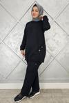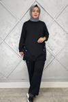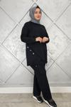 Ka Hijab Taşlı Cep Merserize Takım - Siyah