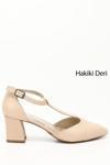 Kadın Nude Bilekten Bağlı Orta Topuklu Hakiki Deri Ayakkabı