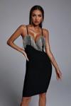 Kadın Omuz Askılı Derin Göğüs Dekolteli Zincir Detay Mini Elbise