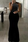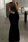 Kadın Omuz çoklu Askılı önü Taş Işlemeli Balık Kesim Janjan Krep Maxi Boy Elbise