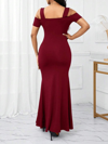 Kadın Omuzlardan Açık Askılı Yırtmaç Detaylı Uzun Ithal Krep Elbise