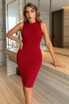 Kadın Omuzlardan Açık Bisiklet Yaka Janjan Krep Elbise
