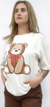 Color Luxe Happy Teddy - %100 Pamuklu Kadın Beyaz Tişört - Premium Quality