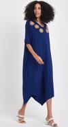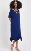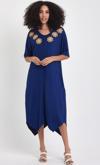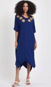 Rodi markasının şıklığı ve rahatlığı bir araya getiren bu elbisesi, mavi rengiyle dikkat çeker.