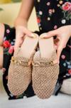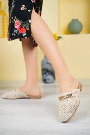Kadın Hasır Önü Tokalı Dantel işlemeli Terlik