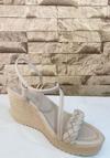 Kadın Örgü Tedaylı 8 cm Dolgu Topuklu Sandalet 4010-123-0002 Krem-39