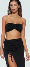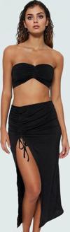 Yaz aylarının vazgeçilmez plaj stili için tasarlanan bu şık siyah takım, rahatlığı ve şıklığı bir araya getiriyor. Fitted kalıbıyla vücudunuza mükemmel otururken, örme kumaşı gün boyu konfor sağlar. Straplez üstü ve dar paçası ile modern ve çekici bir görünüm sunar. Çekici ve modern görünümünüze katkıda bulunan, ince zincirli detay ise takımınıza zarif bir dokunuş katıyor. Bu takım ile plajda güneşin tadını çıkarabilir, akşam yürüyüşlerinizde şıklığınızı sergileyebilirsiniz.
