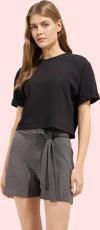 Yaz aylarının vazgeçilmez parçası olacak bu şort, rahatlığı ve şıklığı bir araya getiriyor. Hafif ve nefes alan örme kumaştan üretilen şort, gün boyu konfor sunar. Düz deseniyle her stile uyum sağlarken, bürümcük dokuma detayı şıklığınıza şıklık katıyor. Beli lastikli tasarımıyla oldukça rahattır. Günlük kullanım için ideal olan bu şort, farklı kombinlerle tarzınızı yansıtabilirsiniz. Kısa boyu ve boru paçası ile yazın sıcak günlerinde serin kalmanıza yardımcı olur. Bağlama detaylı tasarımı ile şıklığınıza ayrı bir hava katar.