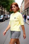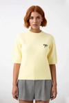 Ürün Özellikleri: Regular kalıp, %80 akrilik %20 polyester materyal, düz desen, bisiklet yaka, düşük kol, triko kumaş, turkuaz renk, kiraz nakışlı tasarım.