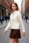 Ürün Özellikleri: Oversize kalıp, akrilik materyal, saç örgü desen, dik yaka, düşük kol, triko kumaş, pembe renk, uzun kol boyu.