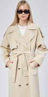 Oversize Ekru Rüzgarlık Detaylı Beli Kuşaklı Trençkot - Image 1