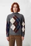 Ürün Özellikleri: Oversize kalıp, akrilik/polyester materyal, baklava desen, dik yaka, düşük kol, triko kumaş, gri renk.