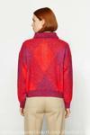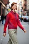 Bu göz alıcı kadın kazağı, oversize kalıbı ile modern ve rahat bir duruş sergilerken, her bedene uyum sağlayarak özgür bir stil sunar. Yüksek kaliteli akrilik ve polyester karışımı materyali sayesinde yumuşak bir dokunuş hissi verir ve soğuk havalarda sizi sıcacık tutar. Canlı kırmızı ve mor tonlarındaki baklava deseni, klasik triko dokusuna dinamik ve enerjik bir hava katarak sıradanlıktan uzaklaşmanızı sağlar. Bu çok yönlü tasarım, hem konforu hem de şıklığı bir arada arayan kadınlar için idealdir.