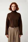 Balıkçı yaka tasarımı, boynunuzu soğuktan korurken şık bir duruş sergiler. Düşük kol ve uzun kol yapısı, oversize kalıp ile birleşerek rahat bir kullanım sunar ve hareket özgürlüğünüzü kısıtlamaz. Orta kalınlıktaki triko kumaş dokusu, nefes alabilen yapısıyla gün boyu konfor sağlarken, tek plaka dokuma tipi de kaliteli işçiliği yansıtır. Süper crop boyu, modern ve genç bir siluet oluşturarak yüksek bel pantolon veya eteklerle mükemmel bir uyum yakalar. Bakımı oldukça kolay olan bu ürün, belirtilen yıkama talimatlarına uygun şekilde makinede yıkanabilir.