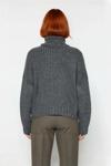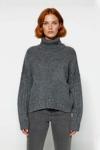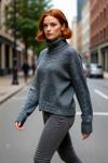 Ürün Özellikleri: Oversize kalıp, akrilik polyester materyal, saç örgü desen, balıkçı yaka, düşük kol, triko kumaş, gri renk, baskısız tasarım.