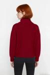 Ürün Özellikleri: Oversize kalıp, akrilik ve polyester materyal, düz desen, dik yaka, düşük kol, triko kumaş, bordo renk.