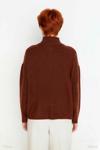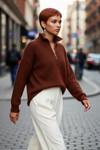 Ürün Özellikleri: Oversize kalıp, akrilik ve polyester materyal, düz desen, dik yaka, düşük kol, triko kumaş, bordo renk.