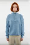 Dik yaka ve fermuar detayı, hem modern bir dokunuş katar hem de hava koşullarına göre yakanın ayarlanabilmesini sağlar. Düşük kol ve uzun kol tasarımı, rahat bir hareket alanı sunarken, selanik dokuma triko kumaşı ürüne karakteristik bir doku ve zengin bir görünüm kazandırır. Cepsiz yapısı sayesinde sade ve akıcı bir siluet sunar. Regular boyu, farklı alt giyim seçenekleriyle uyumlu bir görünüm sergiler. Yıkama talimatlarına uygun olarak makinede kolayca temizlenebilir, pratik ve uzun ömürlü bir kullanım vaat eder. Bu ürün, sürdürülebilirlik ilkeleri doğrultusunda üretilmiştir.