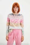 PayBuy Kadın Oversize Bisiklet Yaka Animal Desenli Triko Kazak Kışlık Kombinlerin Gözdesi Uzun Kollu Rahat