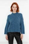 Ersefa Kadın Oversize Dik Yaka Gri Akrilik Uzun Kollu Basic Triko Kazak Kışlık Kombinlerin Anahtarıdır