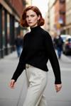 Kadınlara Özel Fitted Kesimli Crop Dik Yaka Uzun Kollu Fitilli Triko Kazak Günlük Stil İçin - Image 1