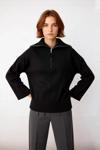 Yarım fermuarlı dik yaka tasarımı, kullanım kolaylığı ve farklı stil seçenekleri sunar; tamamen kapalıyken sıcak tutar, açık bırakıldığında ise daha casual bir görünüm sağlar. Düşük kol tipi ve uzun kol boyu, modern ve rahat bir siluet oluşturur. Fitilli dokuma tipine sahip triko kumaşı, nefes alabilen yapısıyla konforu artırırken, orta kalınlığı sayesinde ideal bir sıcaklık sunar. Cepsiz ve kemersiz basic silueti ile minimal bir çizgiye sahiptir. T41 yıkama talimatına uygunluğu sayesinde bakımı oldukça pratiktir.