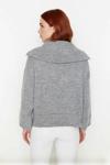 Ürün Özellikleri: Oversize kalıp, akrilik polyester materyal, düz desen, dik yaka, düşük kol, triko kumaş, ekru renk.