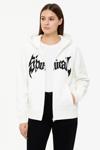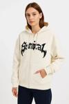 Mzp Kartan Kadın Oversize Kapüşonlu Sweatshirt Hoodie 3 İplik Şardonlu Pamuklu Kumaş, Önü Baskılı, Fermuarlı Ra