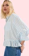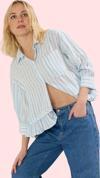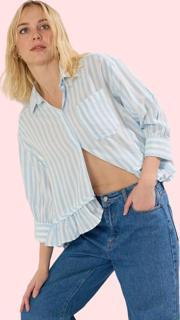 Bu çok yönlü gömlek, 36-44 beden aralığında mevcuttur. Her bedende aynı konforu ve şıklığı sunar.Hem günlük hem de daha özel günler için idealdir. Mavi-beyaz çizgileri her mevsim kombinlerinize uyum sağlar. Fırfırlı etek ucu detayı, gömleğe hareketlilik katar. Bu gömlek ile şık ve rahat hissetmenin tadını çıkarın.
