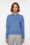 Ürün Özellikleri: Oversize kalıp, 74% akrilik 26% polyester materyal, saç örgü desen, polo yaka, düşük uzun kol, triko kumaş, gri renk, basic siluet.