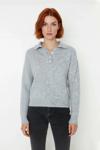 Ürün Özellikleri: Oversize kalıp, 74% akrilik 26% polyester materyal, saç örgü desen, polo yaka, düşük uzun kol, triko kumaş, gri renk, basic siluet.