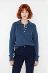 Kadın Oversize Triko Polo Yaka Saç Örgü Düşük Kollu Rahat Kışlık Basic Stil Kazak Kaliteli