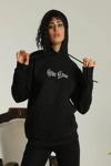 Mzp Kartan Kadın Oversize Üç İplik Kapüşonlu Sweatshirt – Siyah “Other Lives” Ön ve Arka Baskılı, Şardonlu Kışl