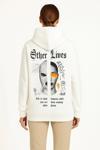 Kadın Oversize Üç İplik Şardonlu Kapüşonlu Sweatshirt – Beyaz “Other Lives” Ön ve Arka Baskılı, Kang