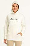 Mzp Kartan Kadın Oversize Üç İplik Şardonlu Kapüşonlu Sweatshirt – Beyaz “Other Lives” Ön ve Arka Baskılı, Kang
