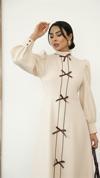 Ürün Adı:Dipmoda kadın atlas kumaş fiyonk detaylı uzun elbise DPMS2515