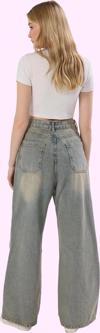 Ersefa Kadın Pamuk Denim Baggy Jean Pantolon Yüksek Bel Geniş Paça Günlük Stil Yaz Aylarının Vazgeçilmezi