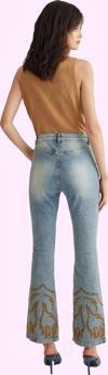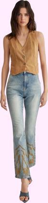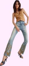 Günlük şıklığınıza modern bir dokunuş katacak, yüksek bel, nakış detaylı, mavi denim flare jean pantolonumuzla tanışın! %100 pamuktan üretilen bu jean pantolon, hem rahatlığı hem de şıklığı bir arada sunuyor. Yumuşak dokusu ve nefes alan yapısıyla gün boyu konforlu bir kullanım deneyimi yaşatırken, ispanyol paçası ve yüksek beli ile vücut hatlarınızı zarifçe vurguluyor. Pantolonun alt kısmındaki ince nakış detayları ise ona eşsiz bir tarz katıyor.