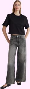 Rahatlığı ve şıklığı bir araya getiren, kadınlar için özel olarak tasarlanmış %100 pamuk denim kot pantolonumuzla tanışın! Koyu lacivert rengi ve düz deseniyle zamansız bir stile sahip olan bu pantolon, normal bel yüksekliği ve baggy kalıbıyla gün boyu konfor sunuyor. Geniş paçası ile modern ve özgür bir görünüm yakalarken, cepsiz tasarımıyla minimal bir şıklık sergiliyor. Her mevsim kullanabileceğiniz bu çok yönlü pantolon, günlük yaşamınızda rahatlıkla kombin yapabileceğiniz çeşitli üstlerle mükemmel uyum sağlar.