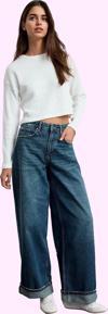 Yumuşak ve nefes alabilir yapısıyla %100 pamuk denim kumaş, üstün konfor sağlar. Baggy kalıp ve geniş paça tasarımı, özgür hareket kabiliyeti sunar. Normal bel yüksekliği, her vücut tipine uyum sağlar. Düz ve sade deseniyle her stile uyum sağlayabilecek bir çok yönlülük sunar. Koyu lacivert rengi ile her mevsime ve her ortama uygundur.