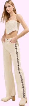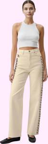 Materyal Bileşeni: 100% Pamuk; Kumaş Tipi: Denim; Paça Tipi: Geniş Paça; Bel: Yüksek Bel; Boy: Uzun; Renk: Ekru; Desen: Nakışlı / İşlemeli; Siluet: Wide Leg; Ortam: Casual/Günlük; Kalıp: Wide Leg; Yıkama Talimatı: T18; Sezon: Yaz; Menşei: TR