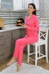 Çamaşır Kenti'nin şık tasarımıyla öne çıkan Kadın Pamuk Penye Önden Düğmeli Uzun Kol Pijama Takımı, rahatlığı ve şıklığı bir arada sunuyor.