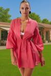 Yaz aylarının vazgeçilmezi olacak bu şık ve rahat plaj elbisesi ile güneşin tadını çıkarın! Nefes alan, hafif ve yumuşak pamuk vual kumaştan üretilen elbise, gün boyu konfor sunuyor. Balon kolları ve derin V yakası ile hem şık hem de feminen bir görünüm yakalayacaksınız. Maxi boyu sayesinde vücudunuzu zarifçe örter ve özgürce hareket etmenizi sağlar. Plajda veya havuz başında rahatça vakit geçirebilirsiniz.