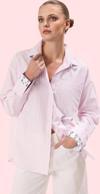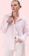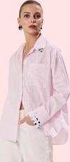 Kendinizi rahat ve şık hissetmenizi sağlayacak, pamuklu çizgili oversize gömleğimizle tanışın! Bu özel tasarım, günlük yaşamınızda rahatlığı ve şıklığı bir arada sunar. Nefes alan %100 pamuk kumaşıyla gün boyu konforlu bir deneyim yaşayacaksınız. Oversize kalıbı, farklı vücut tiplerine uyum sağlayarak her bedene mükemmel bir uyum sağlar. Çizgili tasarımı modern ve şık bir tarz yaratırken, uzun kolları ise dört mevsim kullanım imkanı sunar. Gömleğin yaka ve manşetlerindeki zarif payet detayları, görünümünüze sofistike bir dokunuş katar.