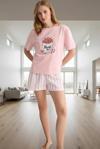 Evde rahatlık ve şıklığı bir arada arayan kadınlar için tasarlanan bu pembe pijama takımı, yaz aylarının vazgeçilmezi olacak. %100 pamuk kumaştan üretilen yumuşak ve nefes alan yapısıyla gün boyu konfor sunar. Sevimli kalpli çizgili tasarımıyla da göz alıcı bir görünüm kazandırır. Kısa kollu üst ve şorttan oluşan takım, rahat bir uyku ve dinlenme deneyimi için idealdir. Bisiklet yakası ve regular kalıbıyla vücudunuzu sarar, hareket özgürlüğünüzü kısıtlamaz. Normal bel şortu ile rahat ve şık bir görünüm sağlar. Makinede yıkanabilir özelliği sayesinde de pratik kullanım sunar. Bu pijama takımıyla evde geçireceğiniz zamanları daha keyifli ve konforlu hale getirin.