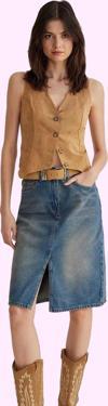 Günlük yaşamınızda şıklığı ve konforu bir arada arayan kadınlar için tasarlanan bu mavi denim midi etek, gardırobunuzun vazgeçilmez parçalarından biri olacak. Yüksek kaliteli, %100 pamuklu denim kumaşından üretilen etek, nefes alabilir ve yumuşak dokusuyla gün boyu rahat bir kullanım sunuyor. Kalem kalıbıyla vücut hatlarınızı zarifçe ortaya koyarken, midi boyu her ortama uyum sağlıyor. Yırtmaç detayı, hareket özgürlüğünüzü kısıtlamadan şık bir görünüm sunuyor.