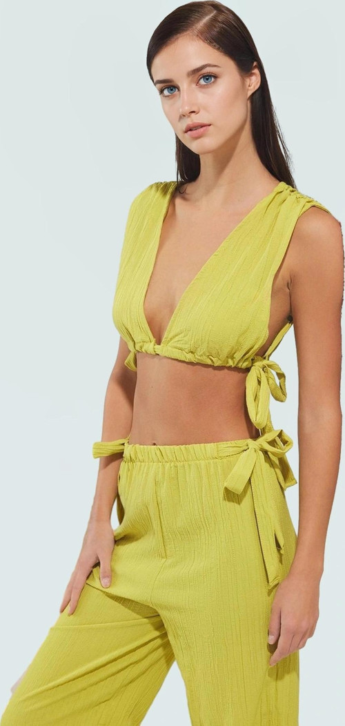Hafif ve nefes alabilir pamuklu dokuma kumaş, sıcak havalarda bile rahatlık sağlar. Bluzun derin V yakası ve bağlama detayı, feminen bir görünüm yaratırken, pantolonun yüksek belli tasarımı belinizi ince gösterir. Ürün; plaj kombinleri, günlük şehir şıklığı veya akşam yemeği için idealdir. Yazın sıcak günlerinde serin ve şık görünmek isteyen kadınlar için mükemmel bir seçimdir. Makinede 35 derecede yıkayabilirsiniz.