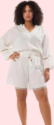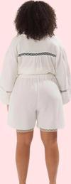 Yüksek kaliteli %100 pamuk dokuma kumaştan üretilen bu şort, yaz aylarında hem şık hem de rahat bir görünüm sunuyor. Ekru rengi, her zevke ve stile uyum sağlar. Yüksek bel tasarımı, vücudunuzu olduğundan daha uzun ve ince gösterirken, rahat kesimi ise gün boyu konfor sağlar. Kısa boyu ve rahat stiliyle plajda, havuzda ve günlük yaşamda rahat hareket etmenizi sağlar. Püsküllü bağlama detayı, şık bir dokunuş katmaktadır.